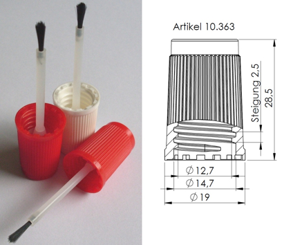Der Pinselverschluss mit einem Gewindedurchmesser von 15mm ist in beliebigen Farben lieferbar.